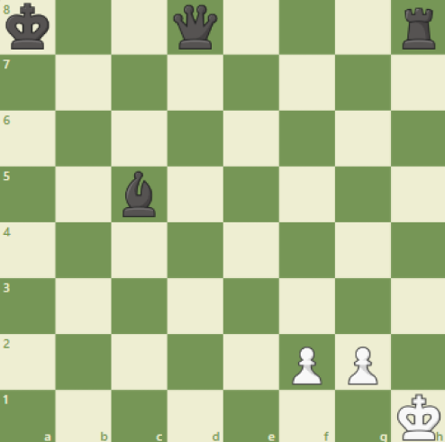 Black: Kg8, Pg7, Rh8, Qd6